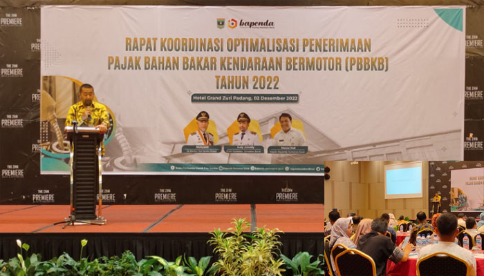 Pada tahun 2022, PBBKB meningkat sekitar 3 persen dari tahun sebelumnya. Hal ini sudah seyogyanya dikelola dengan baik oleh pemerintah daerah. Demikian disampaikan oleh Wakil Gubernur Sumatera Barat, Audy Joinaldy dalam Rapat Koordinasi (Rakor) antara Pemprov Sumbar dengan Stakeholder terkait, dalam rangka optimalisasi penerimaan pajak bahan bakar kendaraan bermotor BPKB tahun 2022 di Padang, Jum’at (2/12/22).