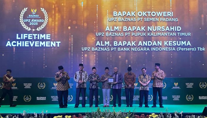 metropadang.com – Prestasi membanggakan kembali ditorehkan oleh insan PT Semen Padang. Mantan Direktur Keuangan & Umum PT Semen Padang, Oktoweri, berhasil meraih penghargaan Lifetime Achievement dari Badan Amil Zakat Nasional (BAZNAS) Republik Indonesia pada ajang UPZ Awards 2025 yang digelar di Jakarta, Rabu (10/9/2025).