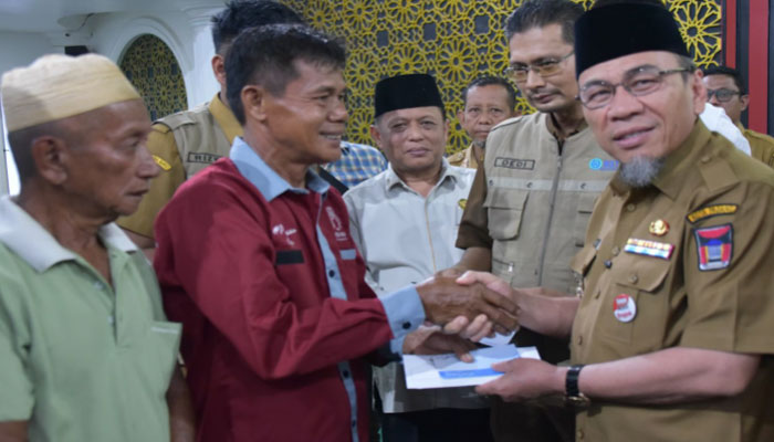Penyerahan bantuan dilakukan langsung oleh Wakil Wali Kota Padang Maigus Nasir, di Masjid Darussalam, Jalan Pemancungan, Kelurahan Pasar Gadang, Selasa (14/10/2025).