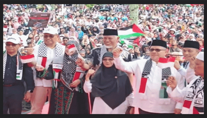 Metro Padang .com – Ribuan warga dari berbagai kabupaten dan kota di Sumatera Barat memadati halaman Kantor Gubernur Sumbar, Minggu (19/10/2025), dalam aksi damai bertajuk Aksi Bela Palestina. Massa juga datang dari provinsi tetangga seperti Riau, Jambi, Sumatera Selatan, dan Bengkulu.