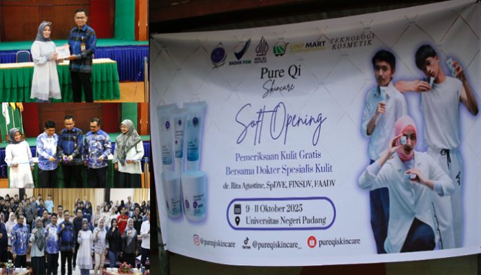 Rektor UNP, Krismadinata, Ph.D., pada acara Soft Opening Pure Qi Skincare yang digelar Kamis (9/10/2025) mengapresiasi tinggi atas terwujudnya sinergi antara dunia akademik dan industri kecantikan. Ia menyebut bahwa kehadiran Pure Qi menjadi bukti nyata bahwa universitas memiliki potensi besar dalam mendukung lahirnya produk inovatif hasil penelitian kampus.