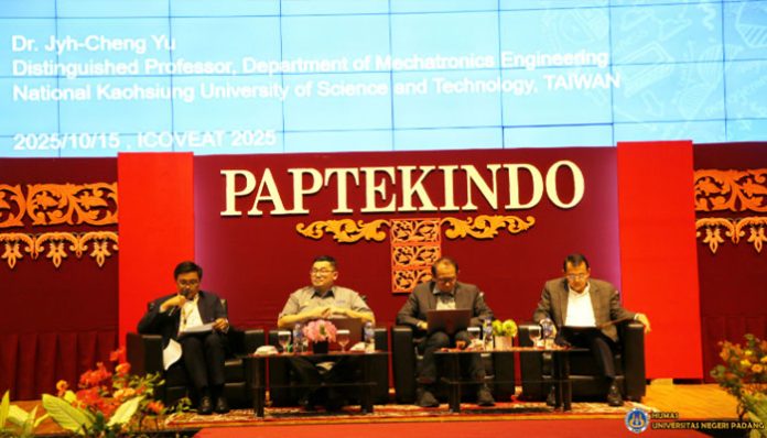 metropadang.com – Universitas Negeri Padang (UNP) menegaskan dalam penguatan vokasi pendidikan di Indonesia melalui penyelenggaraan Konvensi dan Konferensi Internasional PAPTEKINDO ke-12 Tahun 2025 yang berlangsung di Auditorium UNP, Rabu (15/10/2025). Kegiatan yang dihelat bersama Perkumpulan Ahli dan Pendidik Teknologi dan Kejuruan Indonesia (PAPTEKINDO) berkomitmen mencetak lulusan siap kerja, berkarakter, dan berdaya saing global.