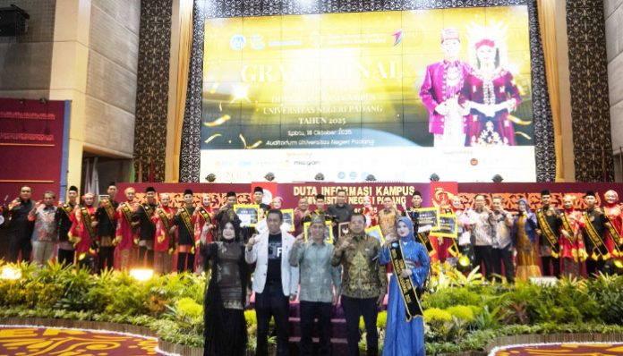 metropadang.com – Jullyanda Fajar Pratama dan Salsabila Tri Rahmi resmi dinobatkan sebagai Uda dan Uni Duta Informasi Kampus Universitas Negeri Padang (UNP) Tahun 2025. Keduanya berhasil menyisihkan ratusan peserta lain dalam ajang bergengsi yang digelar di Auditorium UNP, Sabtu (18/10/2025) malam.