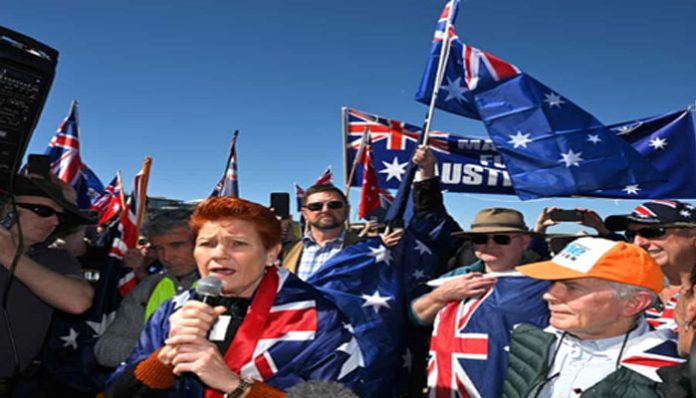 metropadang.com – Dalam beberapa bulan terakhir, dukungan terhadap Partai One Nation kini melonjak tajam, seiring meningkatnya kekhawatiran publik terhadap melonjak imigrasi di Australia. Pauline Hanson, pemimpin partai One Nation berhasil memanfaatkan keresan publik perihal tekanan ekonomi, ketegangan identitas nasional dan tekanan ekonomi. Terjadinya pergeseran besar yang menunjukkan dukungan terhadap One Nation jika dibandingkan pemilu federal sebelumnya.