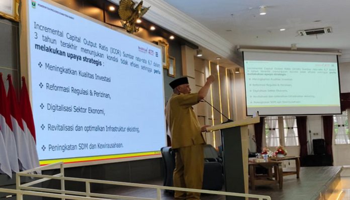 Namun, Gubernur mengingatkan bahwa ICOR Sumatera Barat dalam tiga tahun terakhir masih berada pada angka 6,7, menandakan efisiensi investasi yang perlu ditingkatkan. Karena itu, ia menegaskan lima langkah strategis: Meningkatkan kualitas investasi agar lebih produktif dan berdampak nyata, Melakukan reformasi regulasi dan perizinan untuk mempercepat masuknya investasi, Mendorong digitalisasi sektor ekonomi guna memperkuat UMKM dan memperpendek rantai distribusi, Merevitalisasi dan mengoptimalkan infrastruktur yang sudah ada seperti pelabuhan, rel kereta, dan bandara, Meningkatkan kualitas SDM dan semangat kewirausahaan agar ekonomi tumbuh dari manusianya, bukan semata proyeknya.