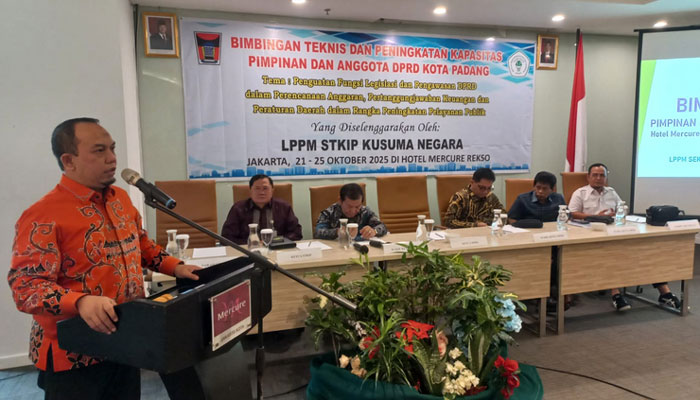 metropadang.com – Dewan Perwakilan Rakyat Daerah (DPRD) Kota Padang melaksanakan kegiatan Bimbingan Teknis (Bimtek) dan Peningkatan Kapasitas Pimpinan Tahun 2025, yang dibuka secara resmi oleh Ketua DPRD Kota Padang, H. Muharlion, S.Pd, Rabu, (22/10/2025) di Hotel Mercure Rekso Jakarta Kota.