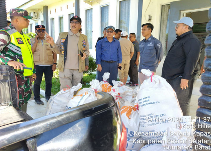 metropadang.com – Pemerintah Kabupaten Pesisir Selatan terus melakukan langkah tanggap darurat guna membantu masyarakat yang terdampak banjir di sejumlah kecamatan. Pada Sabtu, 29 November 2025, Bupati Pesisir Selatan Hendrajoni turun langsung menyalurkan bantuan berupa 750 kilogram beras kepada warga terdampak banjir di Kecamatan Batang Kapas.