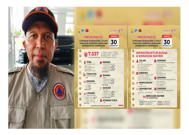 Pemerintah Kota Pariaman melalui BPBD merilis data sementara dampak bencana Hidrometeorologi yang melanda Kota Pariaman sejak Sabtu 22 November 2025 hingga Jumat 28 November 2025.