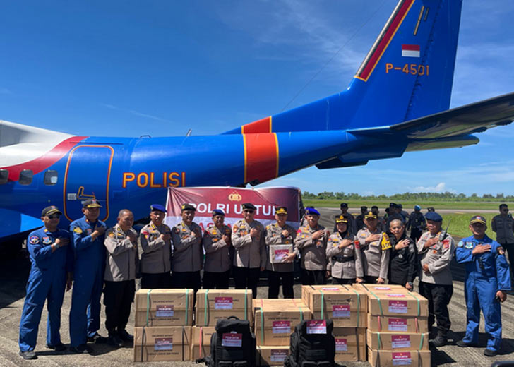 Bantuan dari Mabes Polri meliputi berbagai kebutuhan dasar masyarakat dan peralatan penanganan bencana. Untuk kebutuhan sosial masyarakat, logistik yang diterima terdiri dari 1.000 buah pampers, 500 buah softex, 500 stel pakaian sekolah, 500 buah tas sekolah, 1.000 botol minyak angin, 1.000 botol minyak telon, 1.000 buah autan, 2.000 bungkus nasi cepat saji, 100 buah kasur lipat, 500 dus air mineral, serta 2.000 buah selimut.