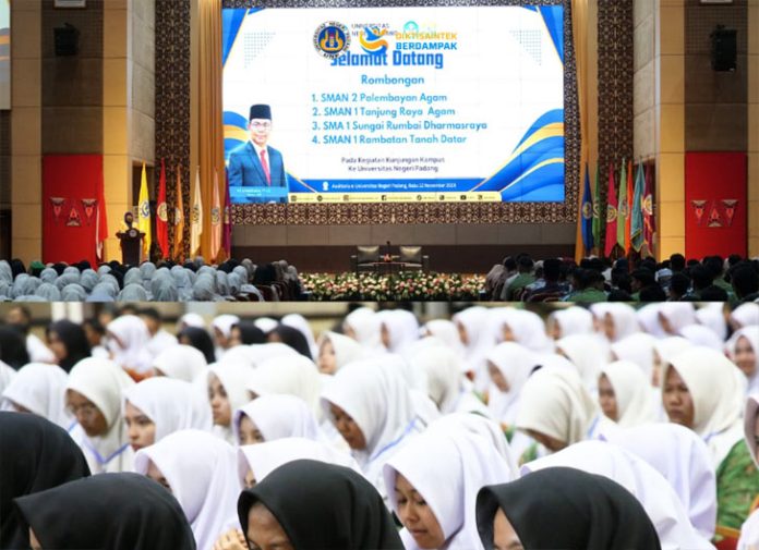 padangtime.com – Universitas Negeri Padang (UNP) kembali menjadi tujuan kunjungan edukasi bagi sekolah-sekolah di Sumatera Barat. Sebanyak 12 sekolah dengan total 1.500 siswa berkunjung ke kampus UNP pada Rabu (12/11/2025), untuk mengenal lebih dekat profil, fasilitas, dan peluang pendidikan di universitas yang berstatus Perguruan Tinggi Negeri Berbadan Hukum (PTN-BH) tersebut.