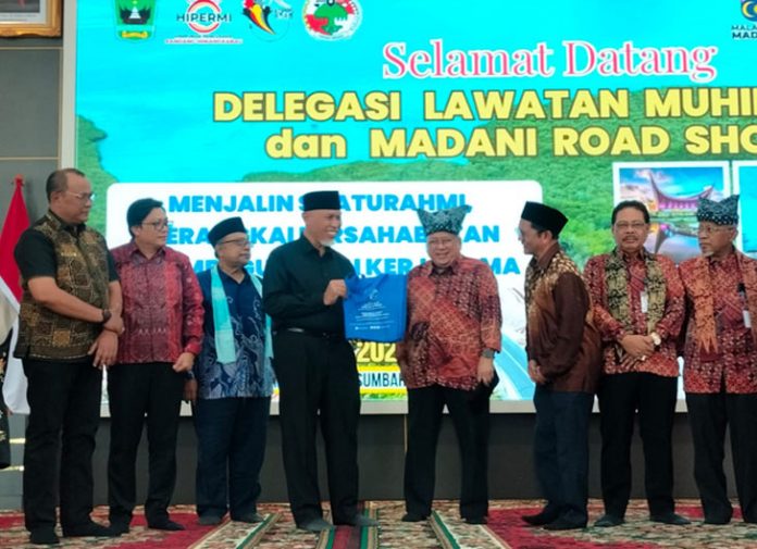 metropadang.com – Gubernur Sumatera Barat (Sumbar) Mahyeldi Ansharullah Datuak Marajo menyambut sekaligus memberikan sambutan dalam kegiatan Lawatan Muhibbah dan Madani Roadshow yang digelar oleh Malaysia Madani, Persatuan Cendekiawan Minang Malaysia (PCMM), Wadah Pencerdasan Umat Malaysia (WADAH), dan Kolej Dar El Hikmah, di Auditorium Istana Gubernuran Sumbar, Senin (10/11/2025).