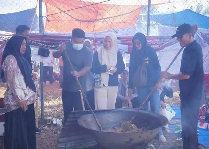 Dalam kegiatan tersebut, Bupati Annisa turut membaur bersama kaum ibu, merasakan langsung suasana memasak rendang di tengah asap tungku kayu bakar yang mengepul dan memerihkan mata.