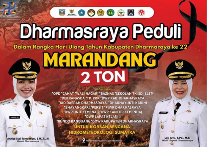 metropadang.com – Pemerintah Kabupaten Dharmasraya akan menggelar aksi kemanusiaan bertajuk Dharmasraya Peduli dengan menyiapkan 2 ton rendang untuk membantu korban bencana hidrometeorologi di Sumatera Barat, Sumatera Utara, dan Aceh.