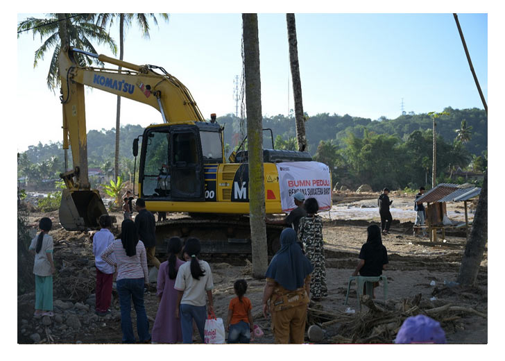 Koordinator Posko PT Semen Padang Peduli–ESDM Siaga Bencana Kota Padang 2025, Ferdy Dinardo, di Padang, Selasa (2/12/2025), menjelaskan bahwa sejak Senin pagi pihaknya telah mengerahkan tiga alat berat ke daerah terdampak banjir bandang di Pauh. “Kemarin dua loader kita fokuskan untuk pembersihan jalan Pasar Baru dan memuat material ke truk. Kemudian excavator kita turunkan untuk normalisasi aliran air sungai dengan pembuatan tanggul di Gunung Nago agar aliran tidak mengarah ke perumahan warga hingga Selasa sore ini,” ujarnya.