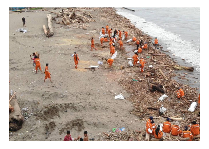 Bagian terbesar dari beban sampah adalah kayu gelondongan, diperkirakan mencapai 1.100 ton. Namun DLH memastikan bahwa volume yang benar-benar harus diangkut tidak sampai separuh. Masyarakat di kawasan pesisir secara aktif memungut dan memanfaatkan kayu tersebut, termasuk pelaku usaha kecil yang menggunakannya sebagai bahan bakar untuk kebutuhan produksi.