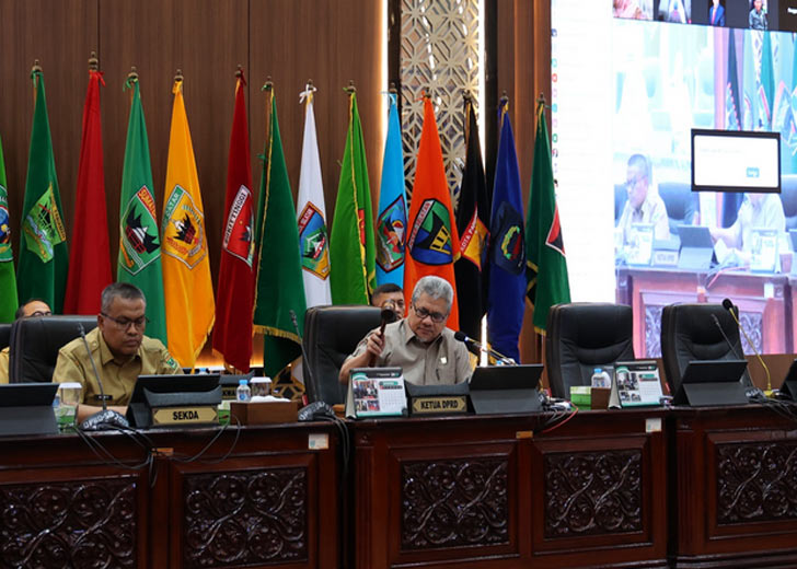 Rapat paripurna dipimpin Ketua DPRD Sumbar Muhidi, didampingi Wakil Ketua Evi Yandri Rajo Budiman dan Sekretaris DPRD Maifrizon. Hadir mewakili Pemerintah Provinsi Sumatera Barat, Sekretaris Daerah Arry Yuswandi bersama jajaran OPD dan anggota DPRD Sumbar.
