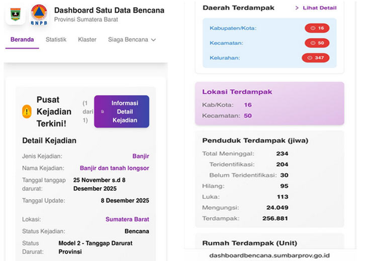Ia menegaskan, data akan terus diperbarui sesuai kondisi terbaru. Masyarakat juga dapat mengakses informasi sementara tentang dampak bencana hidrometeorologi melalui Website https://dashboardbencana.sumbarprov.go.id/incident-region-detail/138f0b15-d4d8-41fa-a8ab-822550bfd9f8?id_daerah=1371