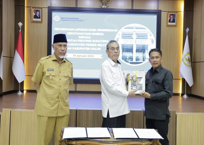 Penegasan tersebut disampaikan Evi Yandri saat penyerahan LHP Kepatuhan atas Kegiatan Peningkatan Sarana dan Prasarana Pendidikan Menengah Tahun 2024 hingga Triwulan III 2025 oleh BPK kepada Pemprov Sumbar, Senin (19/1). LHP tersebut diterima langsung oleh Gubernur Sumbar Mahyeldi dan Wakil Ketua DPRD Sumbar.