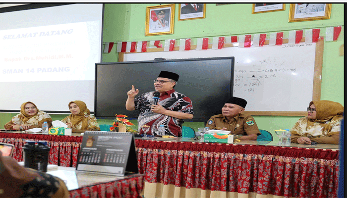 Metro Padang.com –   Ketua DPRD Sumatera Barat, Muhidi, menegaskan komitmennya dalam memperkuat budaya literasi di sekolah sebagai langkah strategis menekan angka kenakalan remaja. Hal itu disampaikannya saat berdialog dengan para guru SMA Negeri 14 Padang, Senin (12/1), dalam rangka penyerahan bantuan baju batik.