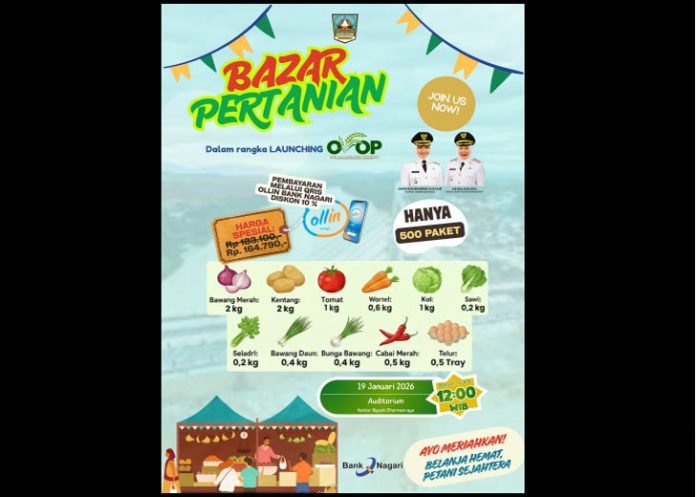 Bazar Pertanian tersebut menjadi bagian dari upaya pemerintah daerah dalam memperkuat ekonomi nagari sekaligus menjaga keterjangkauan harga kebutuhan pangan bagi masyarakat. Ketua Pelaksana kegiatan, Yefrinaldi, yang juga menjabat sebagai Asisten Perekonomian dan Pembangunan Setda Dharmasraya, menyampaikan bahwa kegiatan ini merupakan wujud nyata komitmen Bupati Dharmasraya Annisa Suci Ramadhani dalam menyediakan pangan murah dan terjangkau.