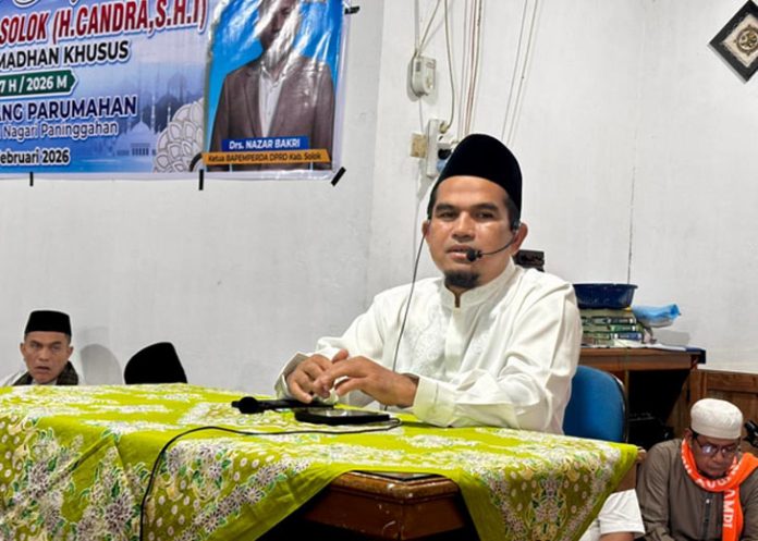 metropadang.com – Komitmen Pemerintah Kabupaten Solok dalam memerangi penyakit masyarakat kembali ditegaskan Wakil Bupati Solok, H. Candra, saat menghadiri Safari Ramadhan di Surau Gadang Jorong Parumahan, Nagari Paninggahan, Kecamatan Junjung Sirih, Sabtu (28/2/2026).