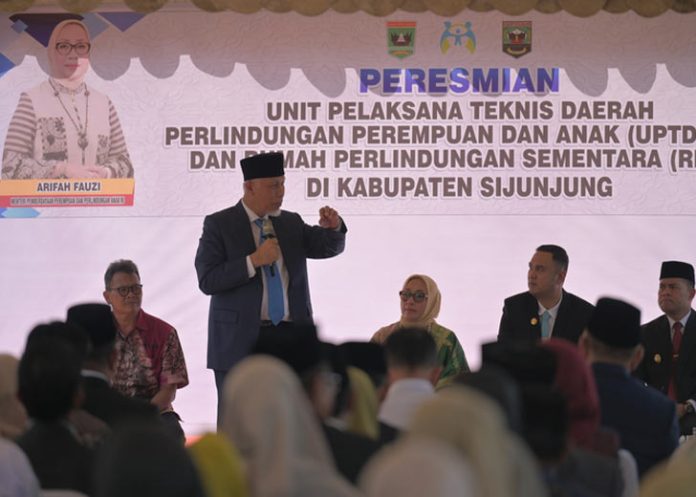 metropadang.com – Gubernur Sumatera Barat, Mahyeldi Ansharullah mendampingi Menteri Pemberdayaan Perempuan dan Perlindungan Anak (PPPA) RI, Arifatul Choiri Fauzi meresmikan Unit Pelaksana Teknis Daerah Pemberdayaan Perempuan dan Perlindungan Anak (UPTD PPPA) serta Rumah Perlindungan Sementara (RPS) milik Pemerintah Provinsi Sumbar di Muaro Sijunjung, Kabupaten Sijunjung, Rabu (18/02/2026).