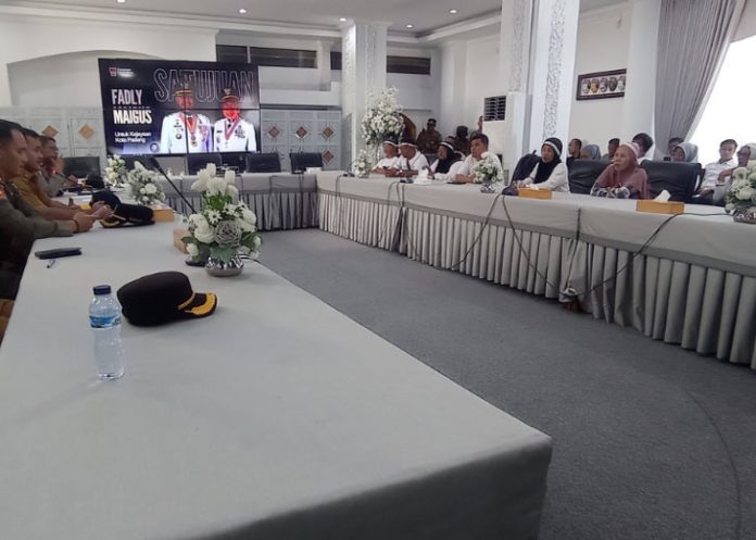 metropadang.com – Penjabat (Pj) Sekretaris Daerah Kota Padang, Raju Minropa menerima perwakilan massa aksi pedagang Pasar Raya yang menyampaikan aspirasi di depan Rumah Dinas Wali Kota Padang, Senin (9/2/2026). Pertemuan tersebut menjadi ruang dialog antara pemerintah dan pedagang terkait kebijakan revitalisasi Pasar Raya Padang.