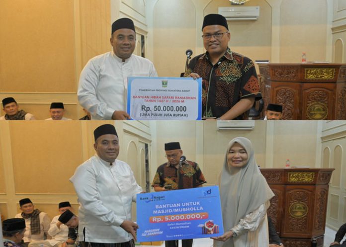 metropadang.com – Sekretaris Daerah Provinsi Sumatera Barat (Seldaprov Sumbar), Arry Yuswandi melaksanakan kegiatan Safari Ramadan 1447 H di Masjid Al Faizin Pincuran Tujuh, Kecamatan Limau Kaum, Kabupaten Tanah Datar, Jumat malam (21/02/2026). Kunjungan tersebut menjadi Safari Ramadan perdana Pemerintah Provinsi Sumatera Barat di Kabupaten Tanah Datar tahun ini.